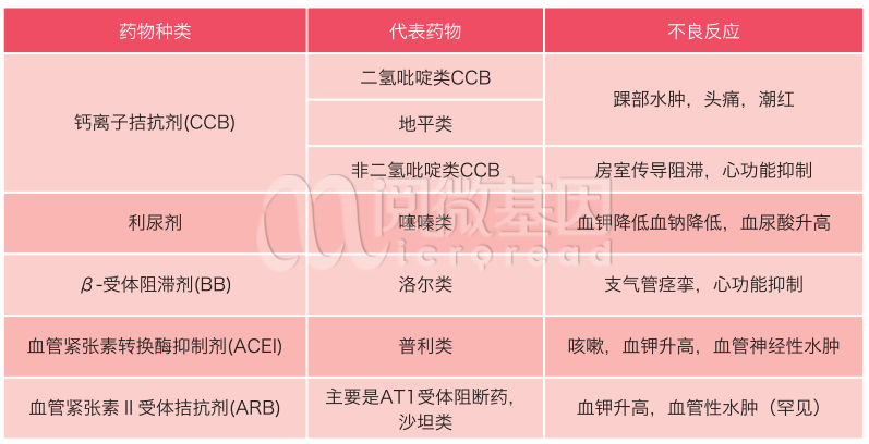 常用高血压药物分类及名称