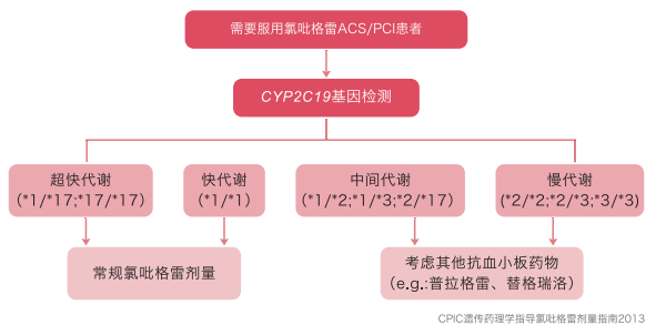 临床药物基因组学实施联盟(CPIC)发布的CYP2C19基因型和氯吡格雷治疗指南中也建议,对于行PCI手术的ACS患者,可顺利获得检测患者CYP2C19基因型来指导氯吡格雷用药。