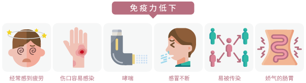 从日常表现中,我们可以初步察觉自身的免疫力状况。如果经常感到疲劳、感冒不断、时常肠胃不适,或者哮喘、容易被感染或传染等,都是免疫力低下的表现。