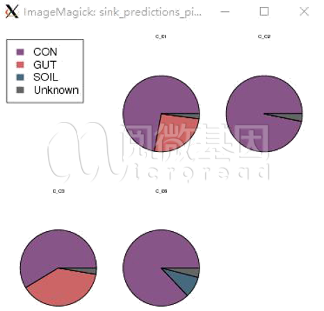 SourceTracker分析图,预测样本来源比例饼图