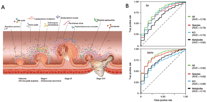 研究内容:宏基因组和代谢组分析揭示肠道菌群明显的结直肠癌阶段性特异表型