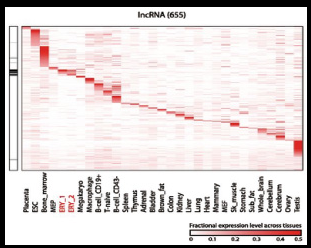 LncRNA的表达是随着生长发育进程而进行调控的,在不同的组织和细胞类型具有一定的特异性,且在空间和时间上因外界刺激的变化而变化。因而相比于编码蛋白质的基因,LncRNA在不同组织之间会展现出非常大的变化。