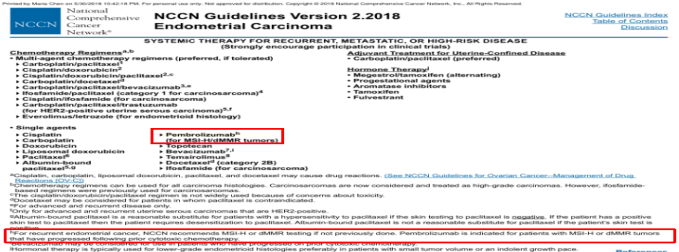2.派姆单抗适用于治疗具有MSI-H/dMMR、化疗后进展的EC患者;