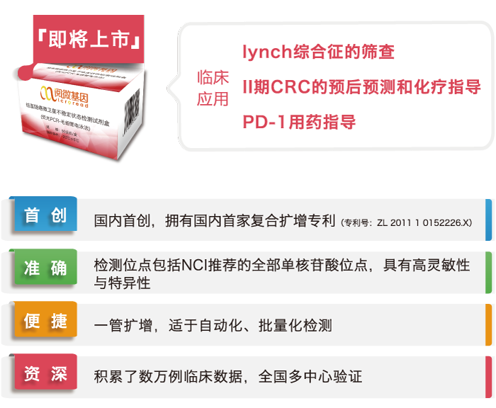 与正常组织相比,微卫星不稳定性(microsatellite instability,MSI)是肿瘤中某一微卫星由于重复单位的插入或缺失而造成的微卫星长度的任何改变。大量研究表明,MSI是由错配修复(MMR)基因发生缺陷引起的,与肿瘤的发生密切相关。临床上,包括NCCN、ASCO、ESMO和《中国结直肠癌诊疗规范》在内的多个权威指南已将MSI作为结直肠癌预后和制定辅助治疗方案的重要分子标志物,并应用于协助Lynch综合征的筛查。此外,PD-1抑制剂顺利获得激活人体自身的免疫系统对抗肿瘤细胞,是近年来肿瘤免疫疗法研究的热点。MSI可指导PD-1用药,提高PD-1药物使用的疗效。