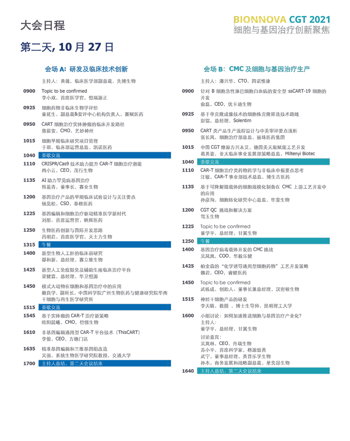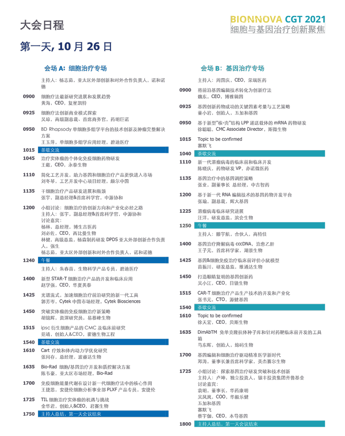 BIONNOVA CGT 2021细胞与基因治疗创新聚焦峰会