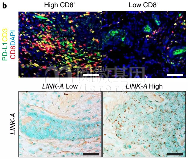 在肿瘤组织中,LINK-A水平与浸润的T细胞数量有关