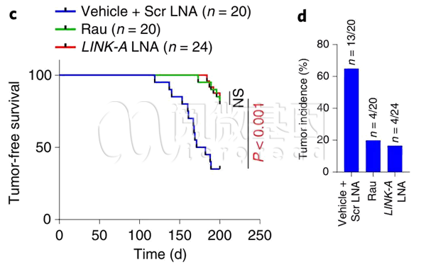 LINK-A抑制剂降低肿瘤发生率