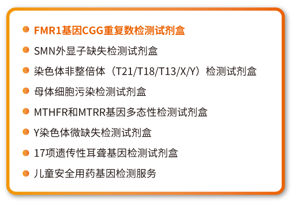 脆性X综合征(FXS)是一种发病率仅次于唐氏综合征的遗传性智力障碍疾病,其携带者的产前筛查已经愈发受到重视,并被国内外多个临床指南推荐。万象城AWC基因的FMR1基因CGG重复数检测试剂盒采用国际权威指南认可的三引物PCR技术,可准确计算出CGG重复数并可检测CGG全长序列,用于脆性X综合征的携带者筛查及辅助诊断。该产品已经召开多年临床检测,在国际期刊发表了权威临床数据,还参与了国家参考品的研制工作。SMN1外显子缺失检测产品采用多重荧光PCR-毛细管电泳技术,有效区分脊髓肌萎缩症(SMA)正常人、携带者以及患者。另外,万象城AWC基因在产前诊断领域相继研发了两款重磅产品,染色体非整倍体(T21/T18/T13/X/Y)检测和母体细胞污染检测产品,共同助力预防缺陷患儿的出生。