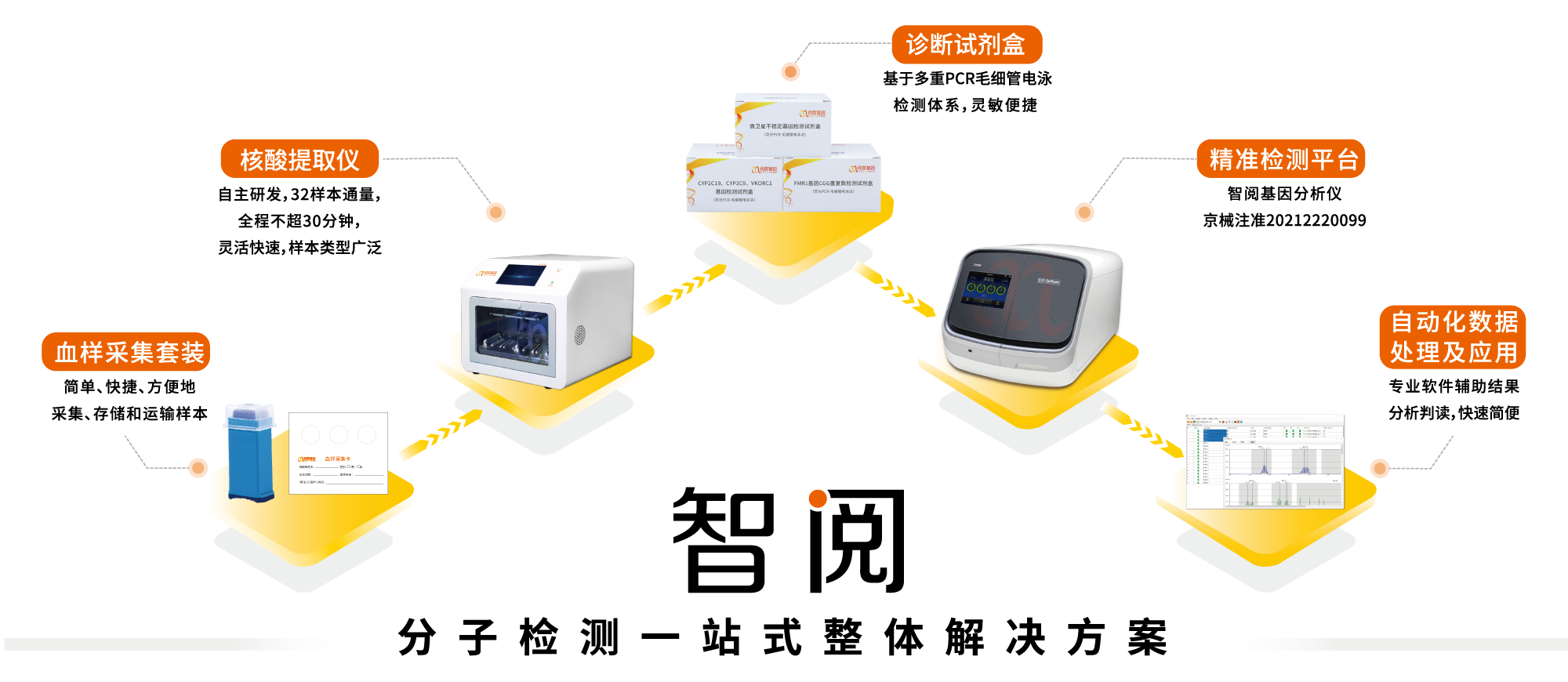 万象城AWC基因“智阅基因分析系统”,以智阅基因分析仪GenReader 7010为载体,搭载血样采集套装、核酸提取仪、配套检测试剂、自主研发的全自动数据分析软件,真正实现了从样本采集、试剂检测到报告分析的一站式整体解决方案,将为中国分子诊断带来全新技术变革。