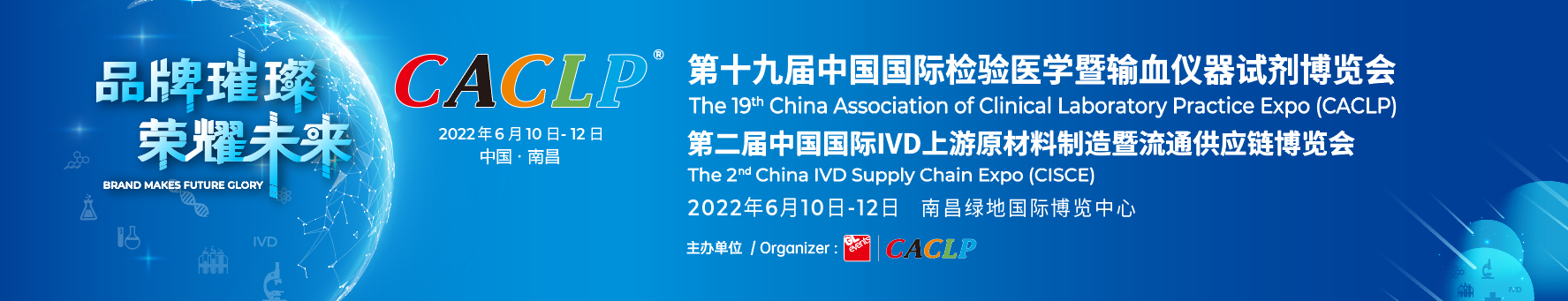 2022年6月10日-12日,第十九届中国国际检验医学暨输血仪器试剂博览会(简称CACLP)将于江西省南昌绿地国际博览中心举办。