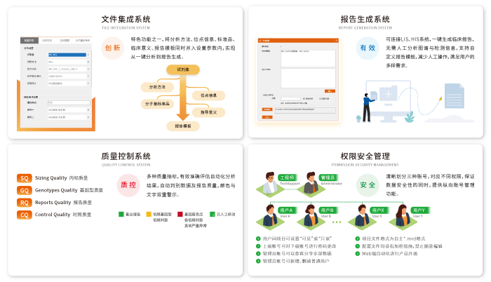 MSI Reader拥有文件集成、报告生成、质量控制、权限管理四大系统,可实现分析方法、指导意义等参数集成化设置,支持全模块自定义修改,严苛的质量指标管理,内置划分不同权限范围,可一键分析及自动报告生成,有效降低实验室投入,提升工作效率和运行稳定性。