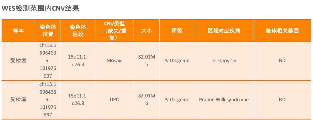 ▶ CNV-seq /基因芯片:15号三体嵌合18%;具有PWS/AS风险,重点关注15号PWS区域中的突变;