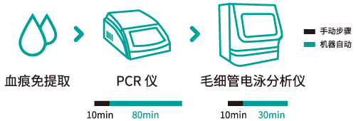 万象城AWC基因掌握核心技术——快速多重基因检测系统:单管检测多重位点,手工操作时间 20 分钟,整个过程 2.5 小时,并支持血卡免提取直接扩增。